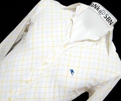 เสื้อเชิ้ต Burberry Black Label Size : 2 (วัดจริงเท่าไซส์ M) ผ้าลายสก็อตสีครีม สวยมากๆ กระดุมคอแนวตั้ง 2 เม็ด ปั๊ม Burberry แขนตอดป้าย Burberry