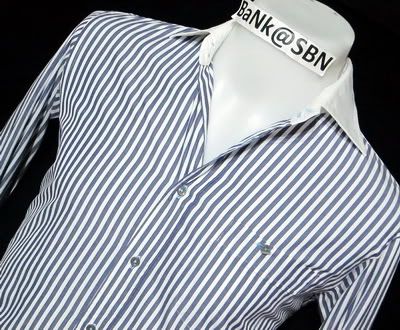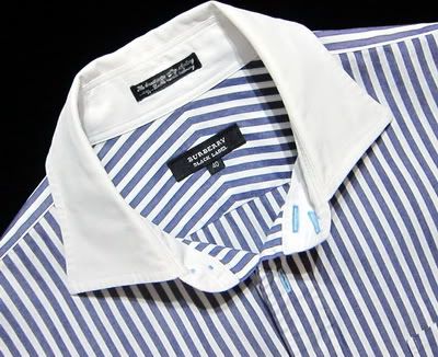เสื้อโปโล Burberry Black Label Size : 3 (วัดจริงไซส์ S) สีขาวจั๊ว ใหม่กริ๊บๆ เล่นลายเส้น สีน้ำเงินที่รอบคอด้านในกับปลายแขนเสื้อ เล่นสีเทาดำที่แนวกระดุม กระดุมปั๊ม Burberry ปักโลโก้ที่อก เนี๊ยบสุดๆ