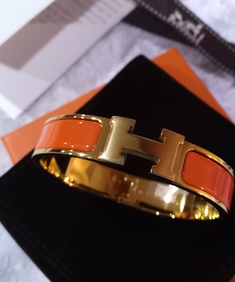 2. NEW!! Hermes Brecelet, Clic-H, Orange-Gold, PM, 2017