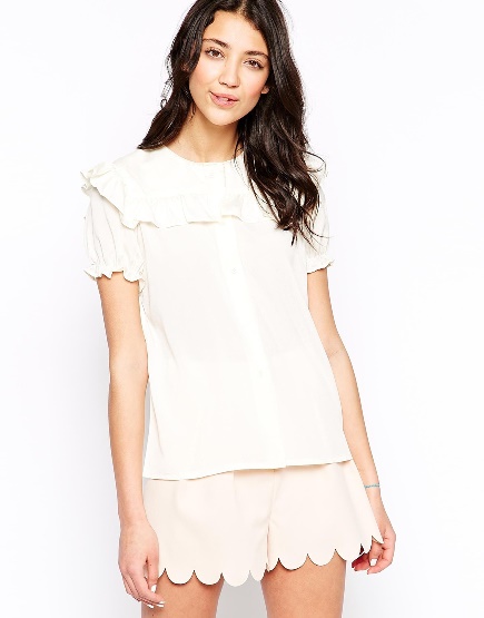 ♥♥– ZARA เสื้อผ้าคอตต้อนสีขาวดีเทลคริสตัลที่คอปกน่ารักสุดๆ
