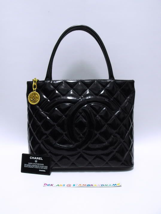 1.Chanel black patent leather gold Medallion Shopper