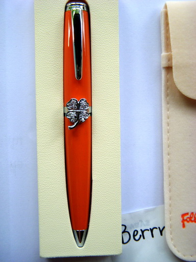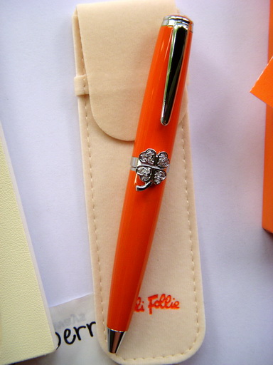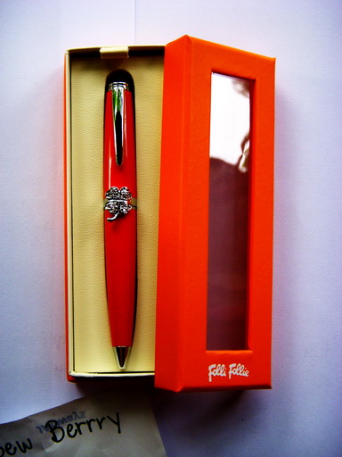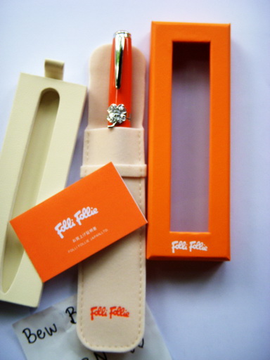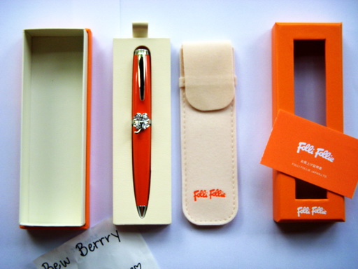 Folli Follie..... ปากกาลูกลื่นสีดำ ของแท้จากญี่ปุ่นค่ะ ขนาดประมาณ 11 ซม.หรือ ประมาณเกือบ 4 นิ้วค่ะ มีเพชรรูปดอกไม้คาดตรงกลาง เก๋ไก๋มากๆๆ มีซองกำมะหยี่สีไข่ไก่ให้ด้วยค่ะ >>>SOLD<<<