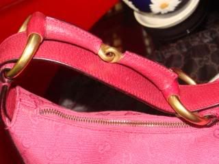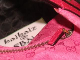ทอลายโลโก้ของ GUCCI เห็นในรูปดูเหมือนเป็นสีแดงแต่ไม่ใช่นะคะเป็น เป็นสีชมพูคะ ฝรั่งเค้าเรียกว่า สี Fuchsia PINK น่ะคะ