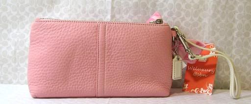 14. Coach Leather Clutch Wristlet #F42127 กระเป๋าคล้องข้อมือ ขนาดประมาณ 12 x 13 cm ใบนี้เป็นหนังทั้งใบนุ่มมากกกกๆ หนังสีชมพูหวานสดใสจริงๆค่ะ แถมมีโบว์ผูกมาด้วย เก๋มากค่ะ ใบนี้ราคา 3,800 บาทจ้า ของใหม่ป้ายห้อย มาพร้อม Gift Receipt, Coach tissue Paper, และ Care Card ค่ะ
