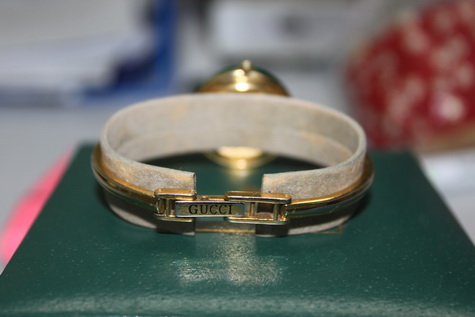 [SIZE="4"]GUCCI Watch สีทองรุ่นเปลี่ยนกรอบได้ค่ะ สภาพตามรูปนะคะ มีลอกบ้างด้านตามการใช้งาน แต่รวม ๆ ยังน่ารักมากมายค่ะ เพิ่งเปลี่ยนถ่านมานะคะ
