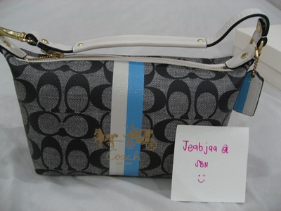 Coach ของใหม่มี มา 3 ใบคะ รุ่นนี้ไม่ใช่ผ้า เป็น PVC กันน้ำ รักษาง่าย ทำความสะอาดง่ายคะ ด้านในบุผ้าสีฟ้า อันนี้ไม่ได้ซื้อจาก Outlet นะคะ เป็น Collection / สี ใหม่ค่ะ