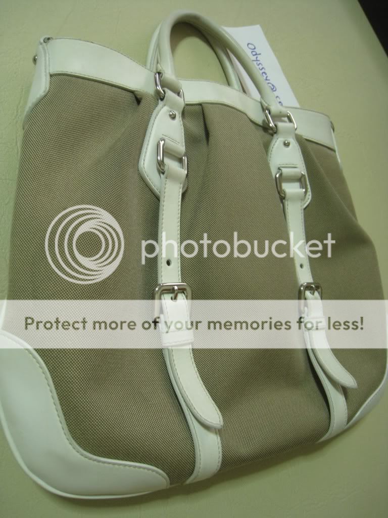 Prada สภาพดีหนังสีขาว ตัวกระเป๋าสีน้ำตาล เก๋มากเลยใบนี้ หูจับมีรอยมือจับเล็กน้อย ตรงมุมกระเป๋า และหูบางจุดมีรอยเลอะนิดหน่อยค่ะ ข้างในใหม่เอี่ยมอ่อง สภาพโดยรวมยังถือว่าสวยและใหม่ค่า ขาย 18,000 บาท