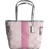 COACH SIGNATURE STRIPE TOTE PURSE BAG สีน้ำตาลมะฮอกกานี สีชมพู สีขาว