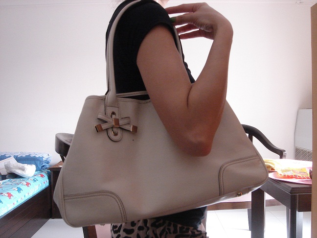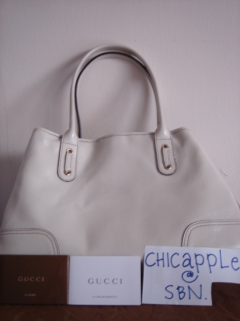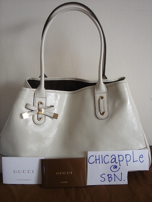 Gucci tote bag ไซส์กลาง เป็นหนังล้วน สีขาวครีม มี detail โบว์ Gucci น่ารักมากค่ะ