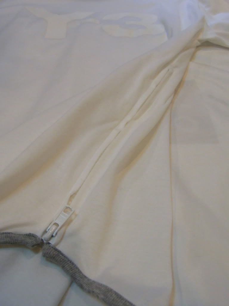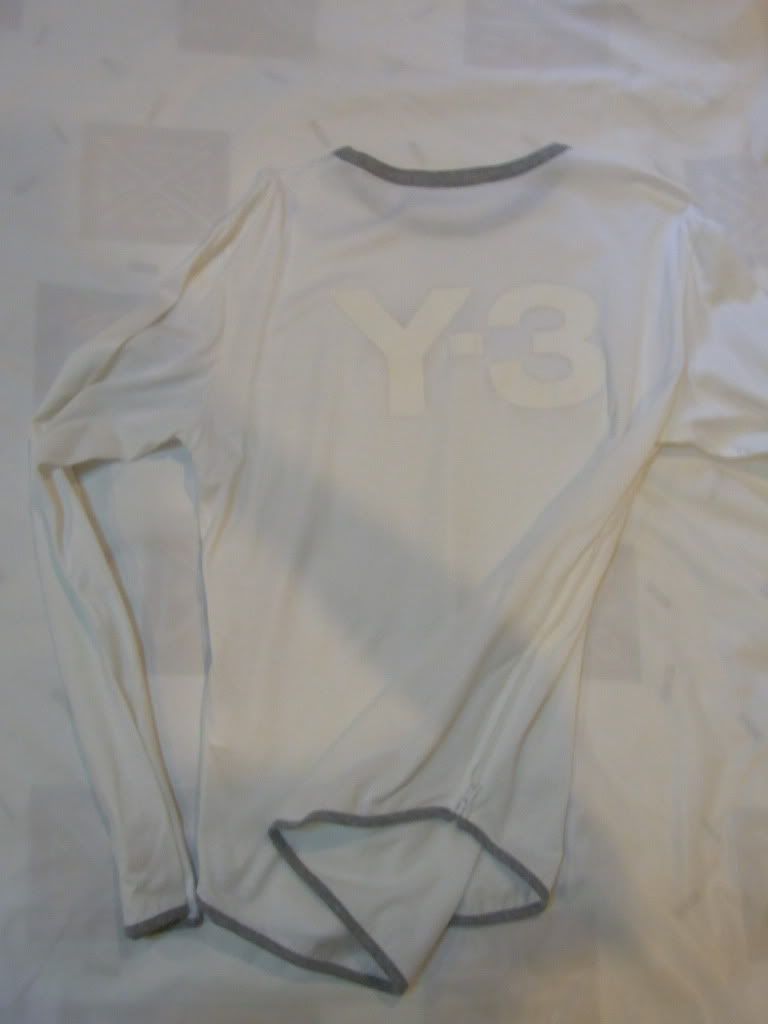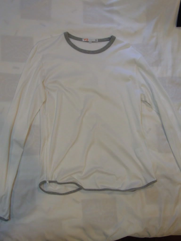 2.เสื้อยืดแขนยาว สีครีม มีพิมลาย Y-3 สีขาวข้างหลัง มีซิบตรงชายเสื้อทั้งสองข้าง