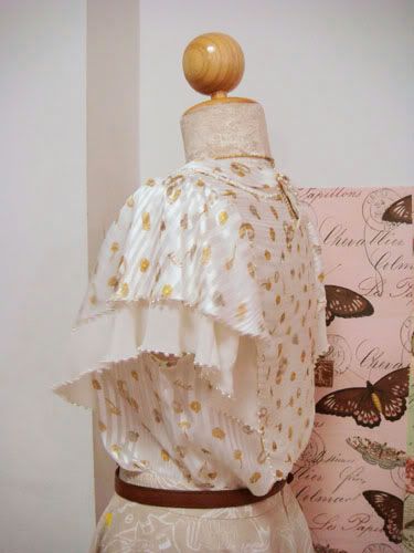 ผ้าชีฟองปักเม็ดตะกั่วสีเงิน ๆ เหมือนหยดน้ำค่ะ