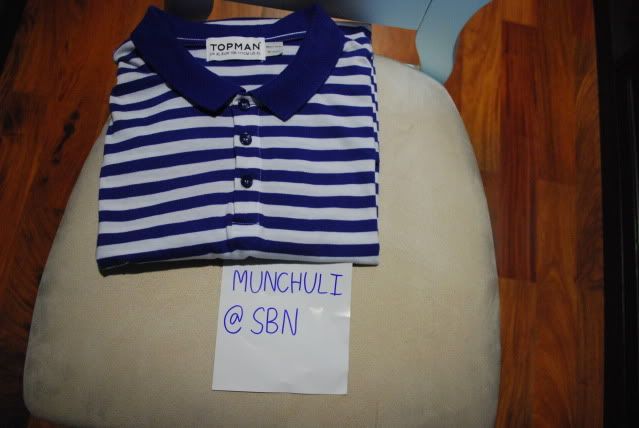2. เสื้อโปโลลายทางสีนำเงิน TOPMAN ค่ะ ตัวนี้ไม่เคยใส่ไปไหน ซักครั้งหนึ่งค่ะ ขาย 590 บาทเหมือนกัน size XL