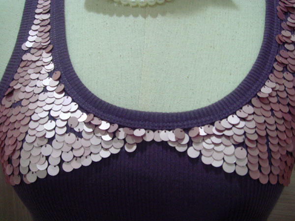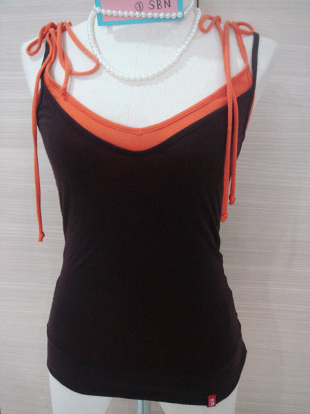 3. เสื้อกล้ามแบรนด์ CCOO ใส่ไป 1 ครั้งค่ะ ตัวนี้สีออกเปลือกมังคุดนะคะ เก๋ตรงช่วงบนแต่งเลื่อม เลื่อมแข็งแรงดีไม่มีลาป่วยนะคะ ขาย 450 บาทค่ะ
