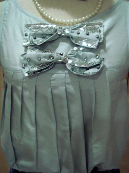 7. แขนกุด jaspal แต่งโบว์ปักเลื่อมที่หน้าอก ตัวนี้ดูดีไฮโซเชียวค่ะ ไม่เคยใส่อีกนั่นแหล่ะค่ะ ราคา 590 บาทค่ะ