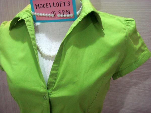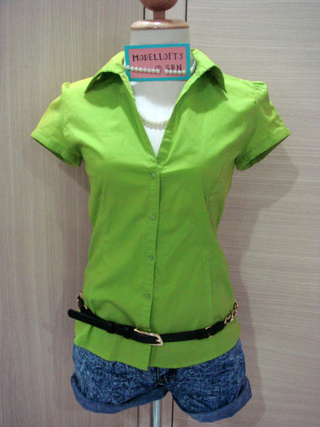 6. เสื้อเชิ๊ตบ่าตั้งนิด ๆ แบรนด์ mng ตัวนี้ไม่เคยใส่ค่ะ ที่ซื้อเพราะสีเขียวสวยดีค่ะ เขียวแบบตอง ๆ ราคา 300 บาทค่ะ