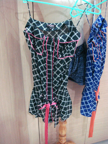 5. สายเดี่ยวลายสก๊อตพร้อมผ้าผูกเอวสองด้าน (ด้านนึงสีเหมือนตัวเสื้ออีกด้านสีพื้นสดๆ) มีสองสีค่ะ ใหม่ค่ะ แบรนด์ XOXO ค่ะ สองตัวนี้น่ารักชนะเลิศค่ะ แต่แม่ค้าเวอร์ชั่นอ้วนขึ้นบวกกับช่วงนี้ใส่ดูม ๆ ทำให้แอบอึดอัดหน้าอกค่ะ อิอิ ตัวนี้เหมาะกับคนหน้าอกประมาณ 32" ค่ะ น่ารักคอนเฟิร์มค่ะ ขาย 800 บาทค่ะ ราคาเต็มก้สองพันกว่าเช่นกันค่ะ