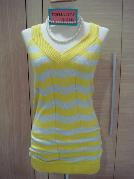 12. เสื้้อตัวยาว/มินิเดรส chaps สีเหลืองสลับเงินวิ้ง ๆค่ะ ตัวนี้ใส่ไป 1 ครั้ง ขาย 450 บาทค่ะ