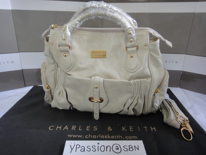 2. กระเป๋าสะพาย Charles&Keith หนังสีครีมไฮโซค่ะ ด้านหน้ามีซิป 2 ด้าน และช่องใส่ของ 1 ช่อง ด้านในมีช่องซิป 1 ช่องและ ช่องเล็ก 2 ช่อง มีสายยาวสำหรับสะพายได้ ราคาใบละ 2400 บาท