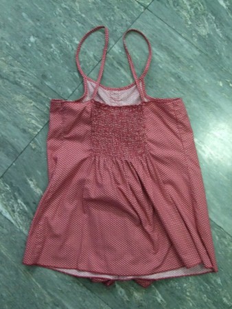 สายเดี่ยวสีแดงลายจุดขาว มีระบาย ใส่ไปคร้งเดียวคะ สอยจากสยามมานานแล้ว ขอขายที่ 250 บาท