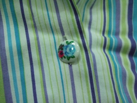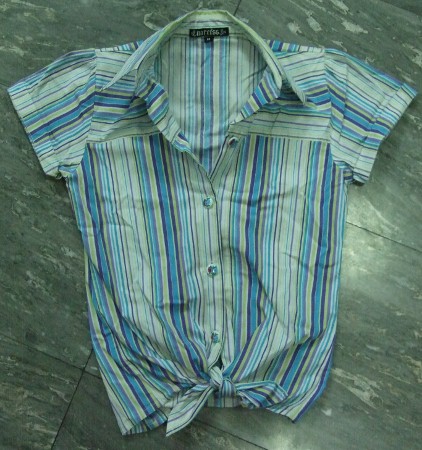 Narciss เสื้อลายทางผูกเอวสดใสน่ารัก กระดุมลายดอกไม้คะ สภาพ 80% ขอขายที่ 300 บาท