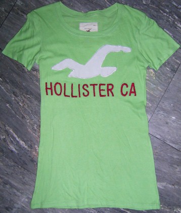 Hollister CA เสื้อยืดสีเขียว เซอนิดๆ ใส่ไปครั้งสองครั้งคะ ขอขายที่ 180 บาทคะ >> 140