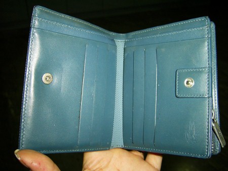 Lacoste กระเป๋าสตางค์สีฟ้า รุ่นยอดฮิต ใบนี้ซื้อตอนอยู่อังกฤษคะ ใช้แล้ว แต่สภาพโอเคเลยคะ ดูตามภาพเรยจ๊ะ ขอขายที่ 790 บาทเท่านั้นคะ >> 690
