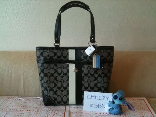[SIZE="4"]Coach Signature Heritage Stripe Tote สีดำ : 7,900.-