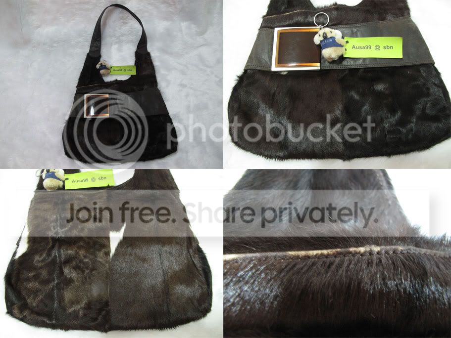 Marni ขนวัว น่ารักค่ะ ด้านในมีมอมบ้าง ด้านนอกขนไม่หลุดค่ะ ขนาดกระเป๋า กว้าง 10 สูง 9.5 นิ้ว ราคา 1300 บาทเท่านั้น