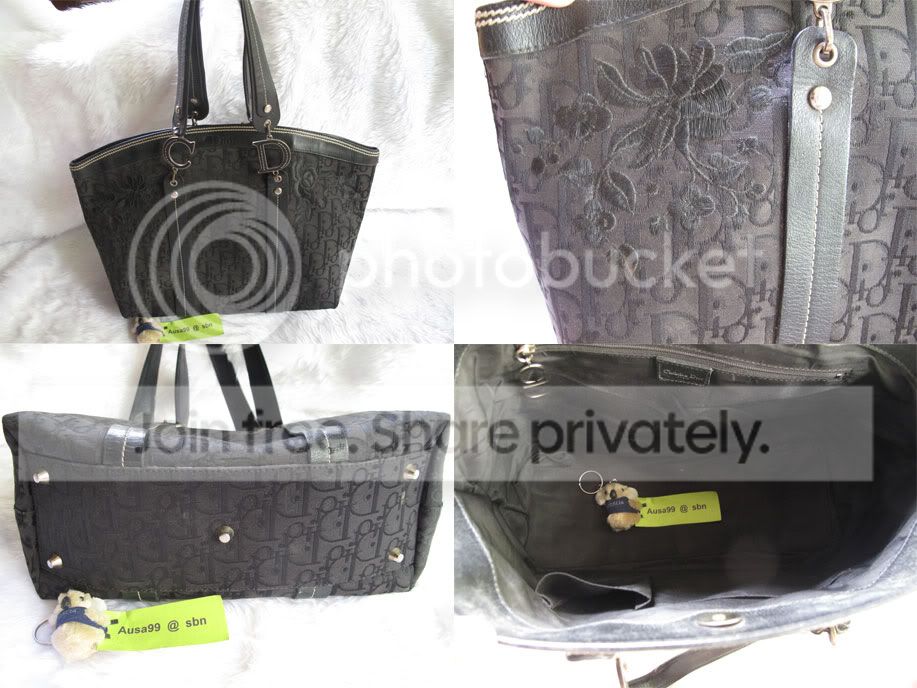 Dior สวยค่ะ สีดำ ไม่มีขาด ไม่ขุย ไม่มีเฟดค่ะ ในรูปแสงเยอะไปหน่อยแต่จริงๆสีเข้มค่ะ มีปักดอกไม้น่ารักค่ะ ขนาด ปากกระเป๋า 16 นิ้ว สูง 11 นิ้ว ราคา 5800 บาทค่ะ