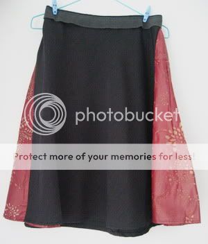กระโปรงบาน issue สีดำเทา size s ด้านข้างมีแถบฉลุสีแดงลายดอกไม้