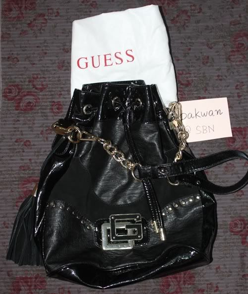 GUESS จาก Shop Central ค่ะ ใบโต๊โต คุ้มมาก โลหะยังเป็นสีทองวิ๊บวับอยู่เลยค่ะ พอดีสาดแฟลชเข้าไปเลยออกเป็นสีเงินค่ะ ขอโทษด้วยนะคะ ใช้ไปครั้งเดียวเท่านั้น มีถุงguessให้ค่ะ ซื้อมาเกือบ 5พัน ขาย 3,500.- >> 3,200 >> เอาไปอีก 3000.-