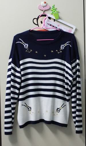 เสื้อแขนยาวลายปัก สีน้ำเงินเข้ม-ครีมนะคะ ใส่แบบหลวมๆน่ารักดีค่ะ CF