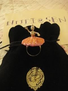 sretsis แหวนบัลเล่ห์ สีส้ม (used) มีตำหนิที่ปลายกระโปรงตามรูปนะคะ แต่แทบมองไม่เห็นเลยค่ะ ขายราคา 1,850 บาทค่ะ