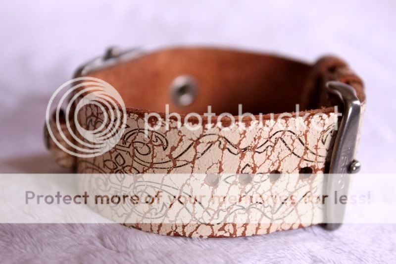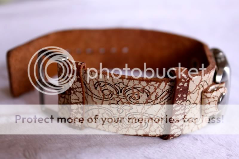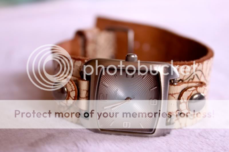 สายลายแตกๆแบก vintage กับหน้าปัดสีออกฟ้าๆน้ำตาลมีมิติ