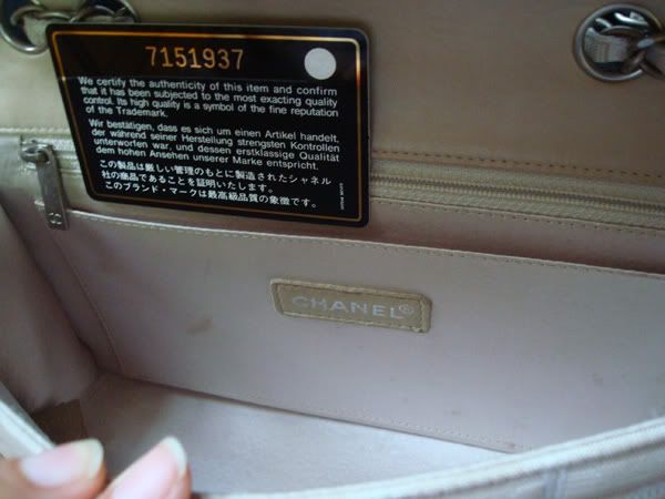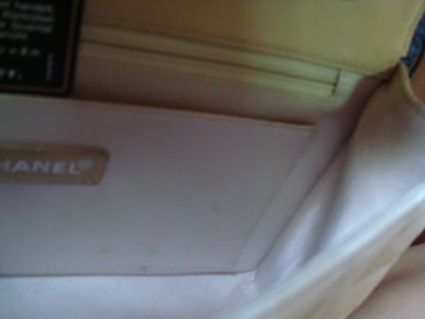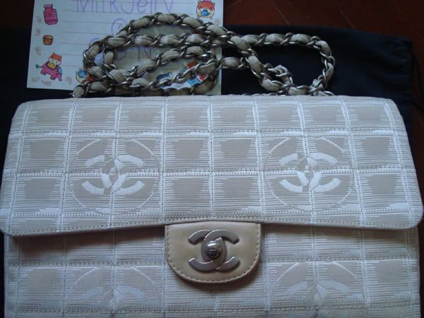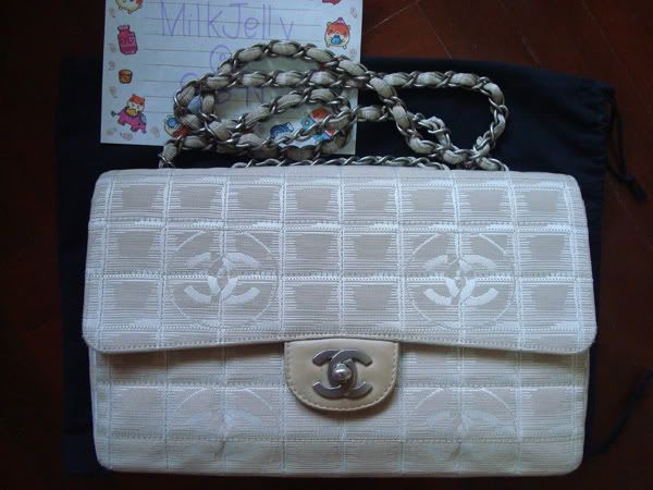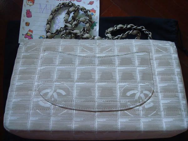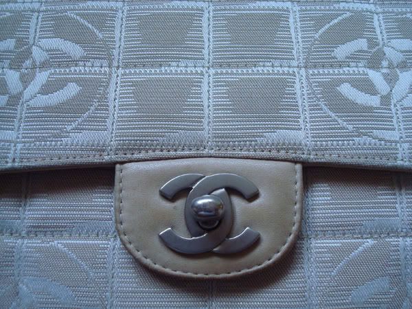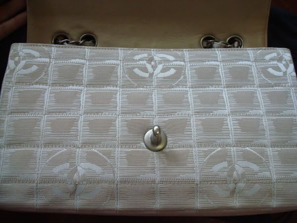 2. กระเป๋า CHANEL ผ้า 10 นิ้ว สีเบจ ฝาด้านในบุหนัง โลหะและโซ่เป็นเงินด้านค่ะ สภาพดีค่ะ