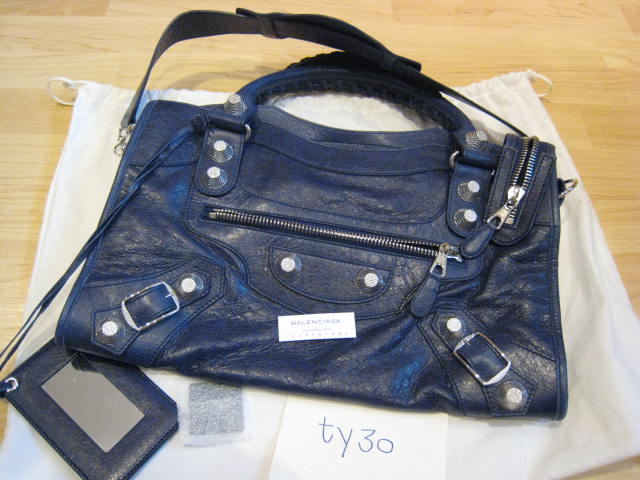 2) NEW : Balenciaga City สีนํ้าเงิน Blue Roi หมุดเงิน ของใหม่ หนังยังหอมมาก มาพร้อมถุงผ้า กระจก ตัวอย่างหนัง การ์ดเล็ก ขายที่ 52,800 บาทค่ะ
