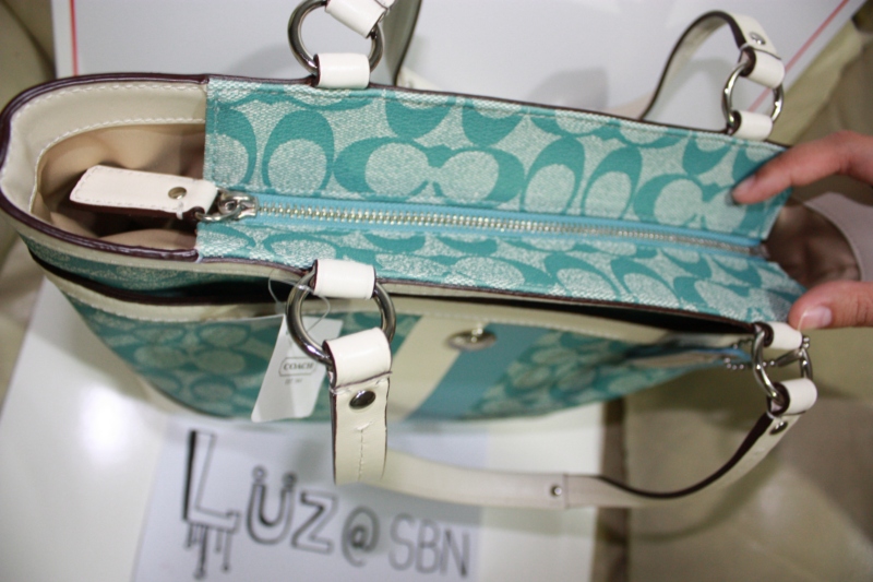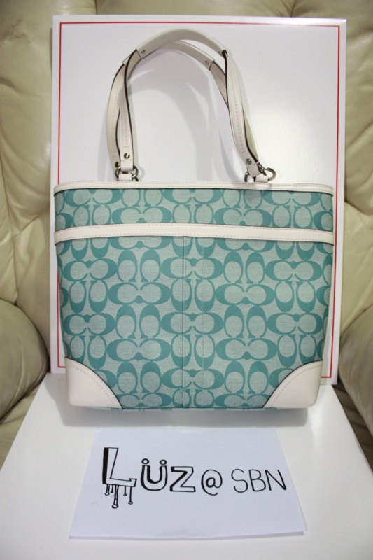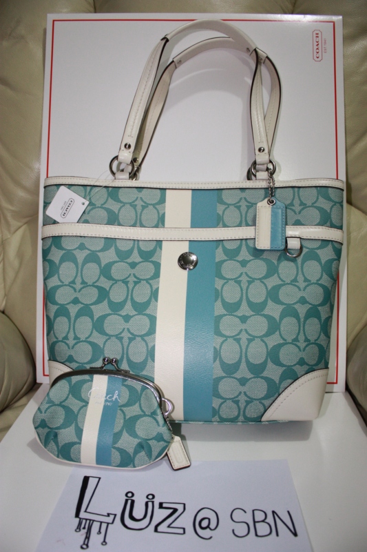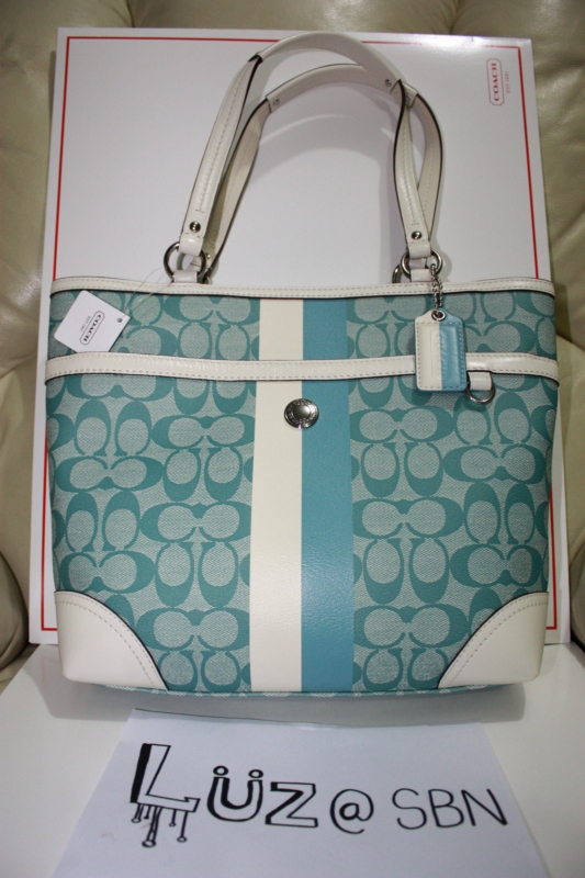 COACH Heritage Stripe Tote Bag [Slate(blue)/Ivory] ราคา 7,000 บาทครับ