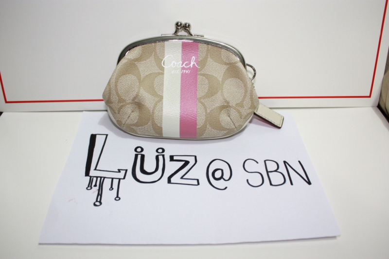 Heritage Stripe Frame Coin Purse [Light Khaki/Pink] ราคา 2,000 บาทครับ