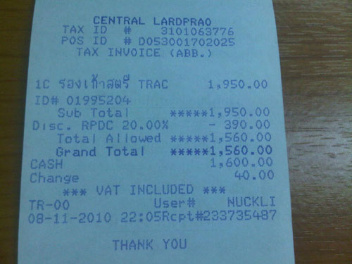 ซื้อมาวันที่ 11 สิงหา นี้เองนะ ยังไม่เคยใส่ไปไหนเลย นอกจากเดินเฉิบๆอยู่ในห้อง