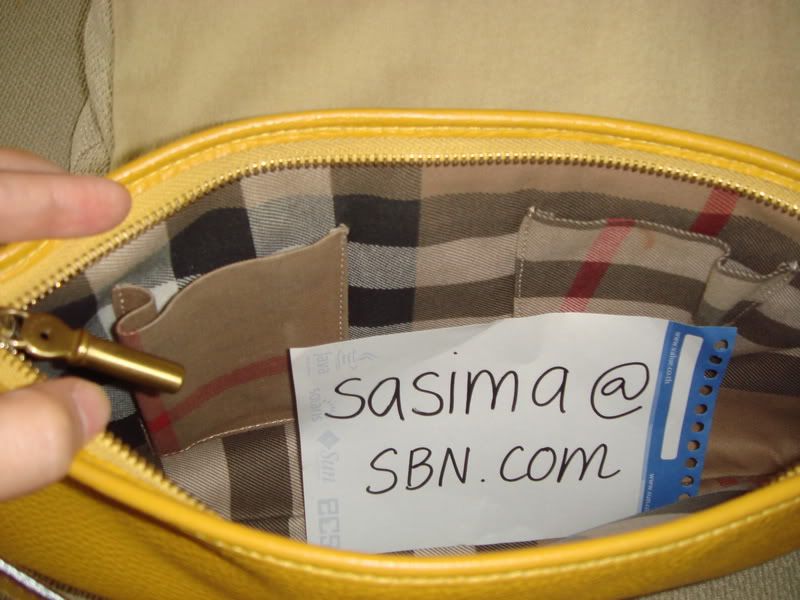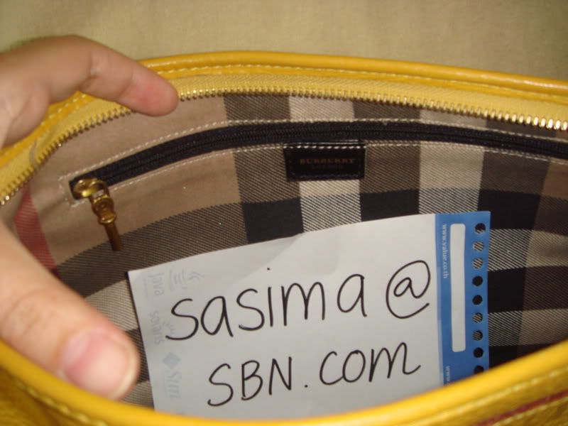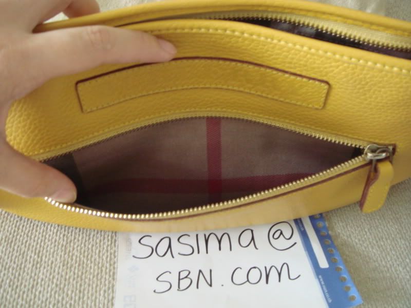 [INDENT]กระเป๋าใบนี้น้องสาวฝากขายนะคะ ซื้อจาก shop burberry ที่สิงคโปร์ สภาพดีมากค่ะ หนังแท้ สีเหลืองสวย สะพายง่ายคล่องตัว มีซิปนอก ซิปใน ช่องใส่ของจุกจิก ผ้าบุลาย signature burberry ค่ะ อะไหล่ทองด้านเซอร์ๆ ตัวซิปเก๋ จะมีก็แต่รอยสีติดนิ๊ดนึงที่หนังช่วงต่อสายหิ้วอ่ะค่ะ แต่ดูไม่น่าเกลียดนะคะ นอกนั้นดูสวยแจ่มทั้งใบค่ะ ไม่มีรอยถลอกใดๆ ของแท้แน่นอน มีถุงผ้าให้นะคะ ขอขายที่ 11,000 บาทค่ะ