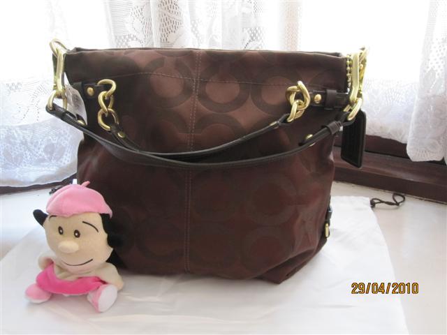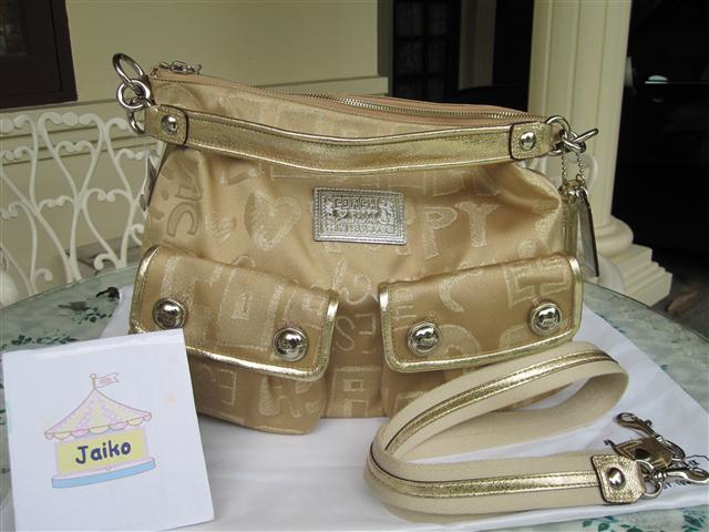 Coach Poppy Signature Sateen Hobo สีครีมล้วน อะไหล่ทอง น่ารักค่ะ มีสายสะพายยาวด้วย ขนาด 13 3/4" (W) x 11" (H) x4 1/4" (D) ขายใบละ 7900