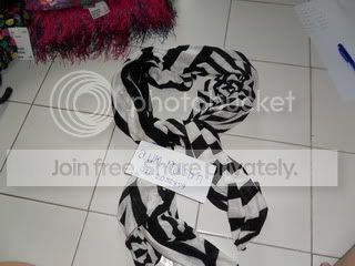 ผ้าพันคอลายขาวดำ เป็นผ้านุ่มใช่ห่มก็ได้นะคะ ผืนละ 950 บาท