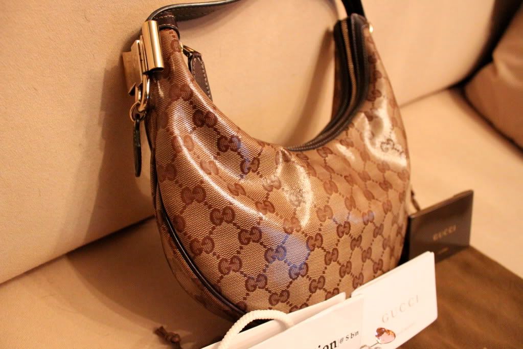 Gucci สภาพดีมากๆ มีอุปกรณ์ให้ครบค่ะ ทั้งถุงผ้าและ Gucci La Storia มาในเล่มทองๆ เล็กๆ ราคา 17,900 บาท