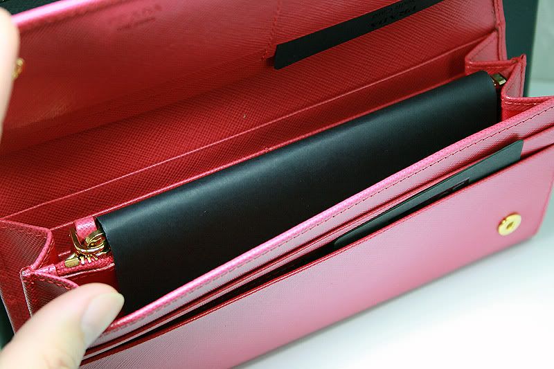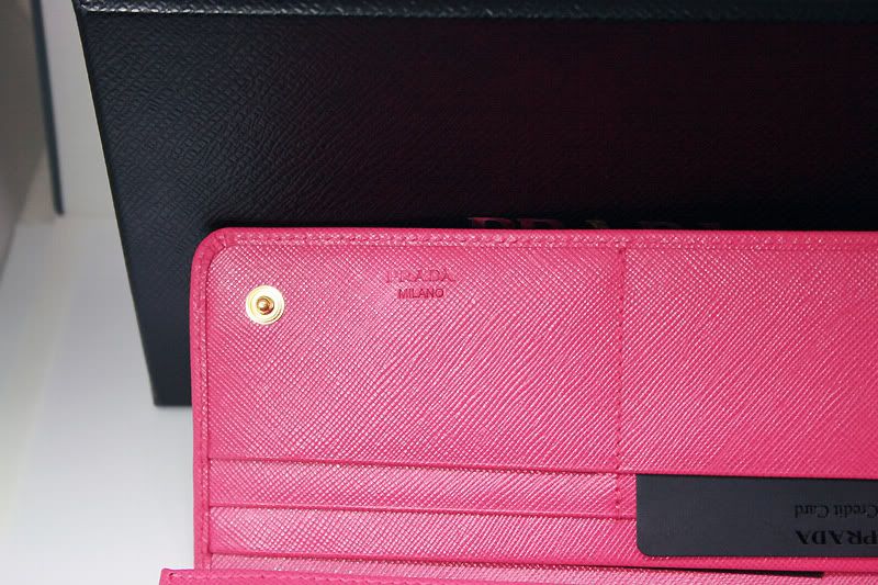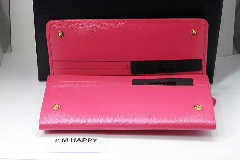 กระเป๋าใส่เงินแบบยาวของ Prada รุ่นคลาสสิค สีชมพูเข้ม ซื้อมากจากประเทศอิตาลี ซื้อเมื่ออาทิตย์ที่แล้วเองค่ะ รุ่นนี้คลาสสิค ใช้แล้วไม่มีทางเอาท์ค่ะ ราคา 12000 บาท