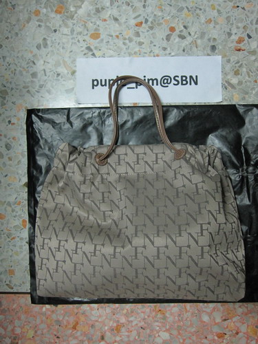 5.กระเป๋าคล้องแขน Flynow สีน้ำตาลผ้ากันน้ำ กลิ่นผ้า-หนังยังอยู่ ราคา 750 บาท
