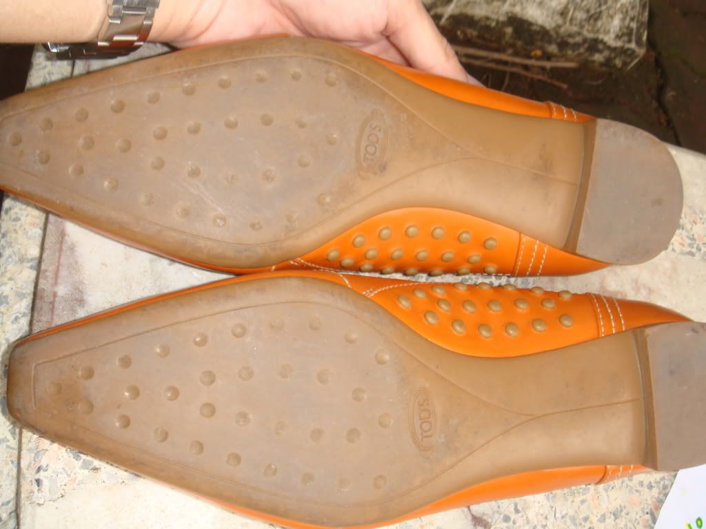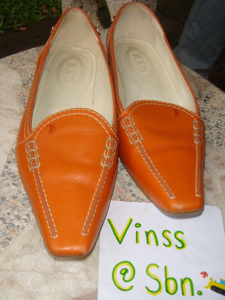เริ่มที่ชิ้นแรก กับ Tod's size 37 สีส้มทรงหัวแหลมค่ะ ใส่แล้วเท้าไม่ยาวไปนะค่ะ ราคา 3,500 บาทค่ะ
