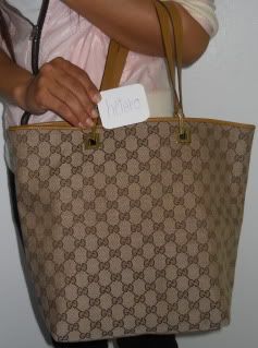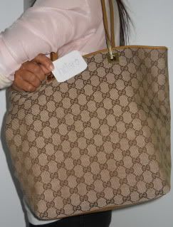 GUCCI ผ้า หู-สาย-ปาก-ก้นเป๋าเป็นหนังสีเหลืองขนาด14x12"ขายตามสภาพ 6,900 บาท (เนต)