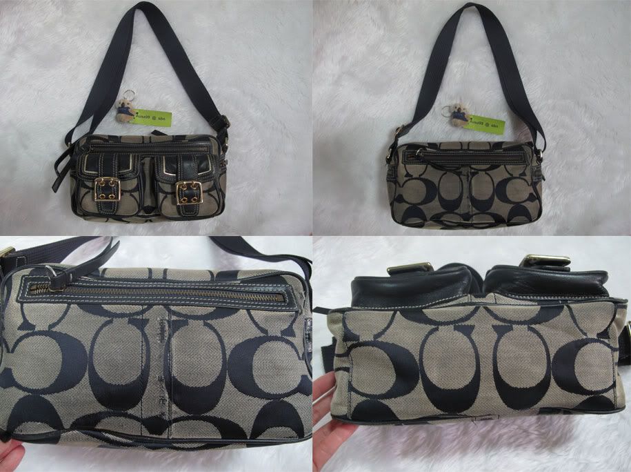 COACH messenger ตำหนิมีรอยถลอกด้านหลังหน่อยค่ะ มอมเล็กน้อยฝุ่นๆบางๆไม่น่าเกลียด ขนาด ปากกระเป๋า 11 นิ้ว สูง 5.5 นิ้ว ก้นกระเป๋ากว้าง 4 นิ้ว จุมากๆ ช่องเยอะค่ะ ราคา 1500 บาทจ้า