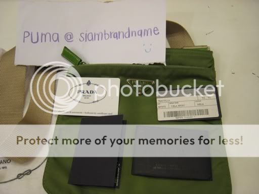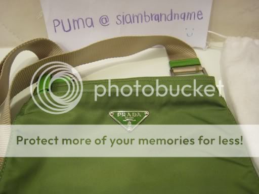 4. กระเป๋าผ้า Prada สีเขียว สายสีน้ำตาลครีม มีถุงผ้า+Card