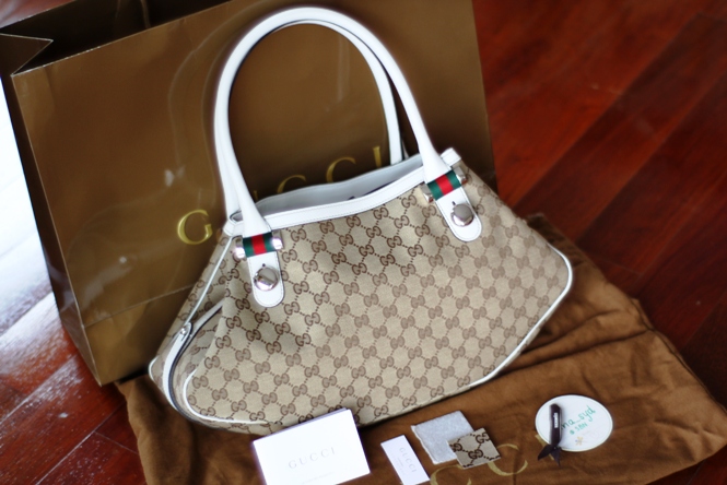 ของใหม่ป้ายแดงจ้า ราคาเท่ามือสอง ขนาดน่ารักๆ จุดีและมีช่องใส่มือถือเรียบร้อย ที่ช้อปไทย ขายกันอยู่ 38,000 บาท มีอุปกรณ์ครบ การ์ด ตัวอย่างผ้าชิ้นเล็กๆของ Gucci ถุงผ้า ถุงกระดาษ ขายแค่ 22,000 บาทเท่านั้นค่ะ